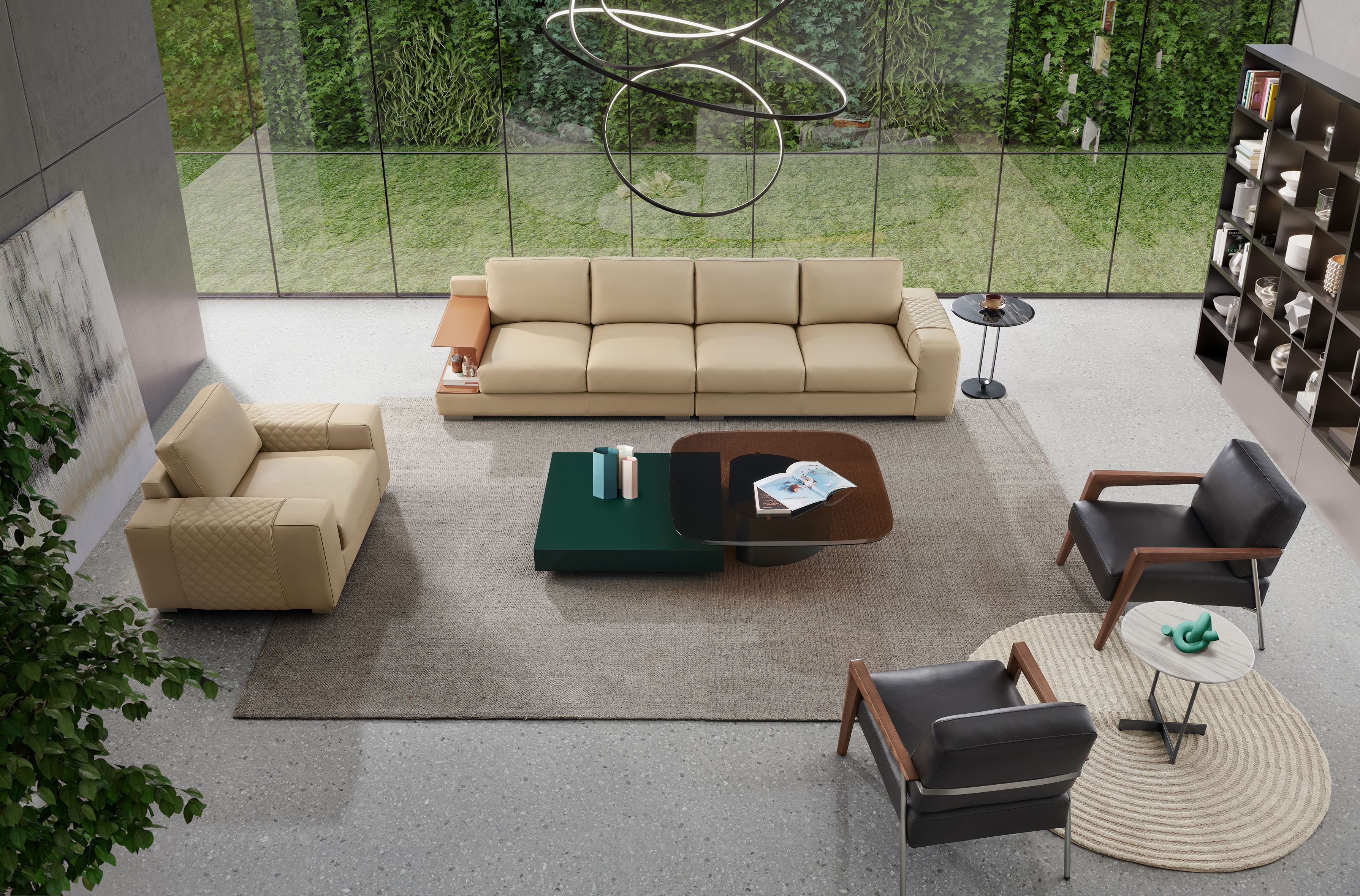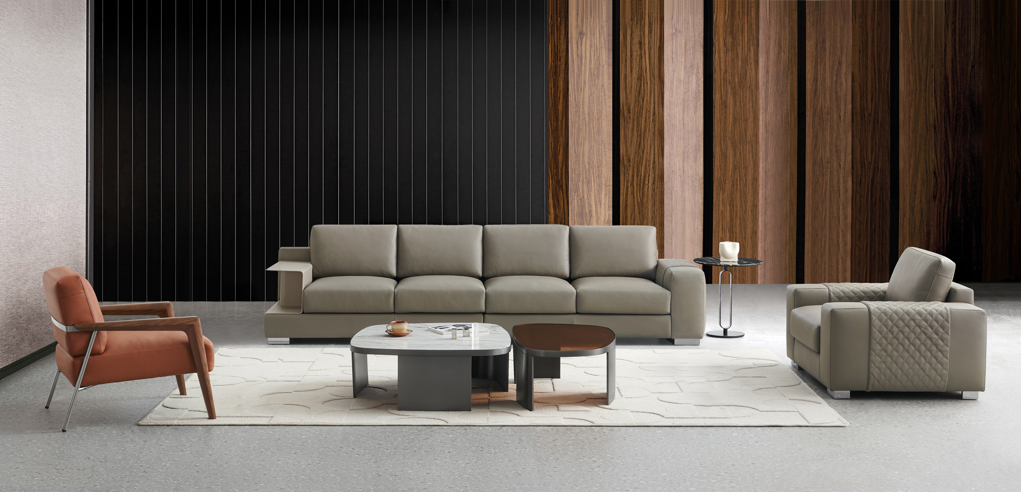 FU8027 is an integral sofa. The seat frame is made of iron, the backrest is made of a wooden frame, the seat is customized with down and high-density sponge, and the armrests are made of stereotyped cotton, which is more comfortable.