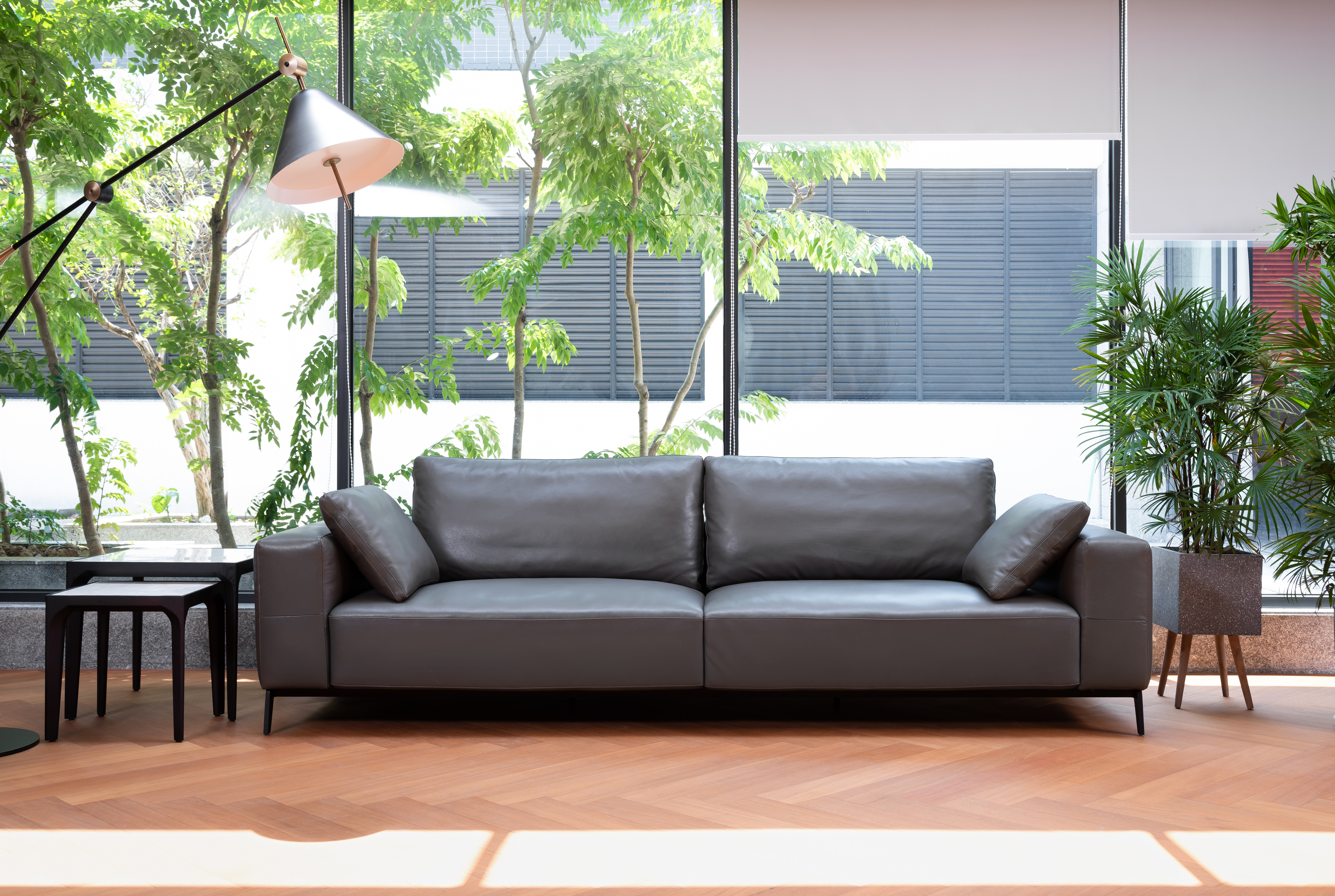 FU8013 is an integral sofa. The seat frame is made of iron, the backrest is made of a wooden frame, the seat is customized with down and high-density sponge, and the armrests are made of stereotyped cotton, which is more comfortable.